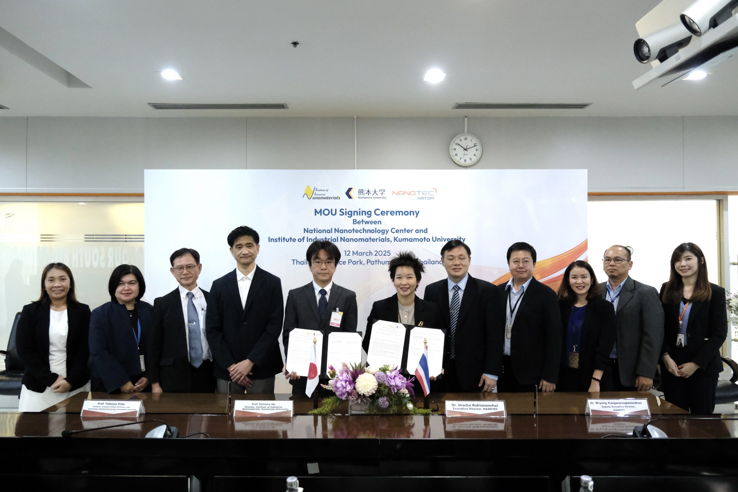 12 March 2025 – the Institute of Industrial Nanomaterials (IINa), Kumamoto University has officially signed a Memorandum of Understanding (MoU) with National Nanotechnology Center (NANOTEC), under the National Science and Technology Development Agency (NSTDA). This collaboration aims to advance nanotechnology research, foster innovation, and promote global knowledge exchange.